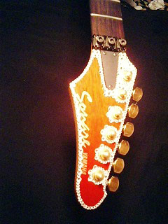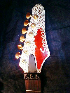 11日目です。ヘッド部分に突入。よく見るとYAMAHAって書いてあります(笑) ヘッドやペグ周囲を貼って終了。今日は、4.5時間作業。